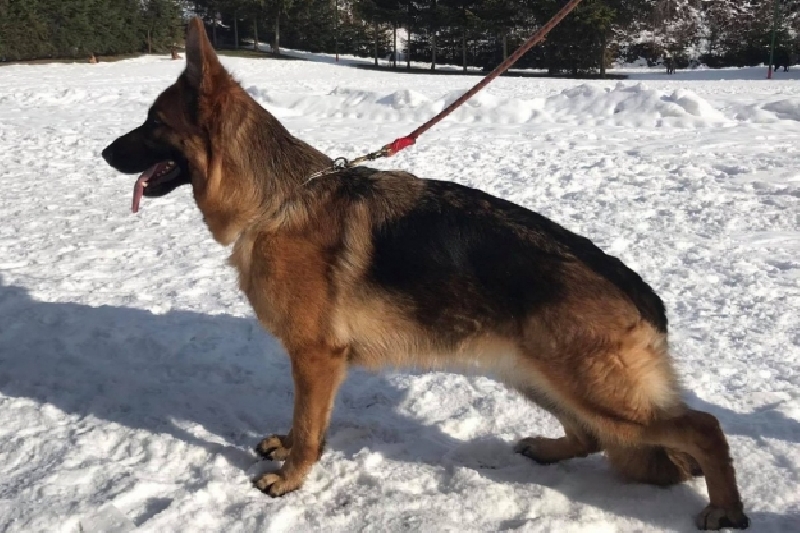 Judgment: Medium size, medium thickness, elongated, good pigment, nice head and expression. Good top and bottom line, good position of the crosses. Correct angles of forelegs and hind legs, straight front and step sequence. Good movement. Confident, TSB pronounced.